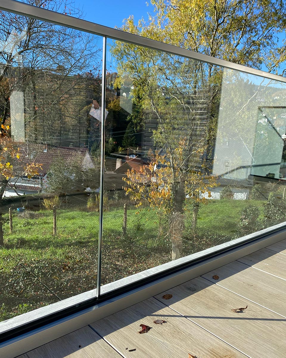 Brüstungen und Treppengeländer schützen Sie vor Stürzen und trennen elegant Wohnbereiche voneinander. Wir bieten Ihnen die hochwertigen Brüstungsverglasungen von BOHLE, die in modernem Design Ihr Zuhause aufwerten und dabei besonders pflegeleicht sind. Die Glaselemente können entweder auf Pfosten oder auch mit einer Punkthalterung montiert werden. Unsere Brüstungsverglasungen eignen sich für Neubauten wie auch für die Renovierung.